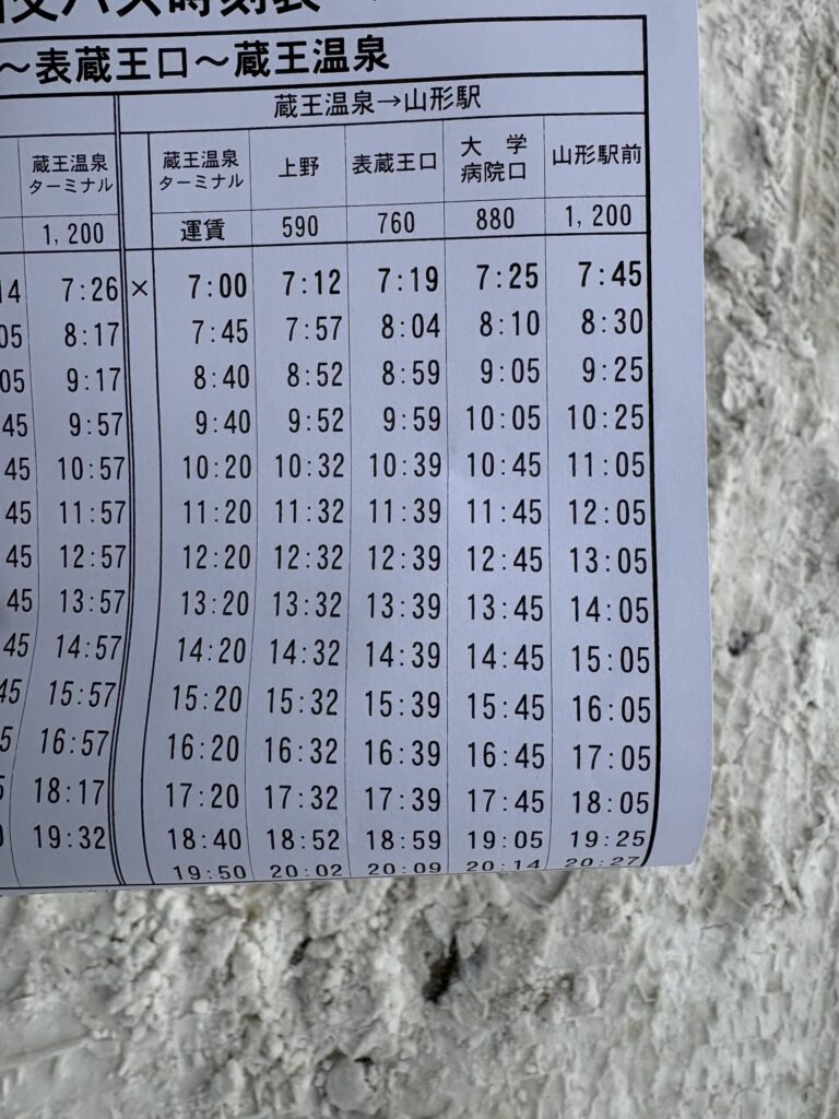 - 17:20発のバスには16:30で並んでいました。人が多いと、17:20までに臨時便が出るようです。私は17:00に臨時便が出て17:45に山形駅に着きました。